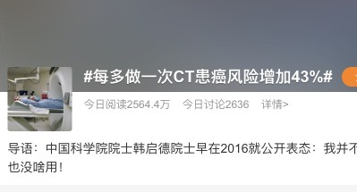 “每多做一次CT,患癌风险增加43%”上热搜,真的吗?