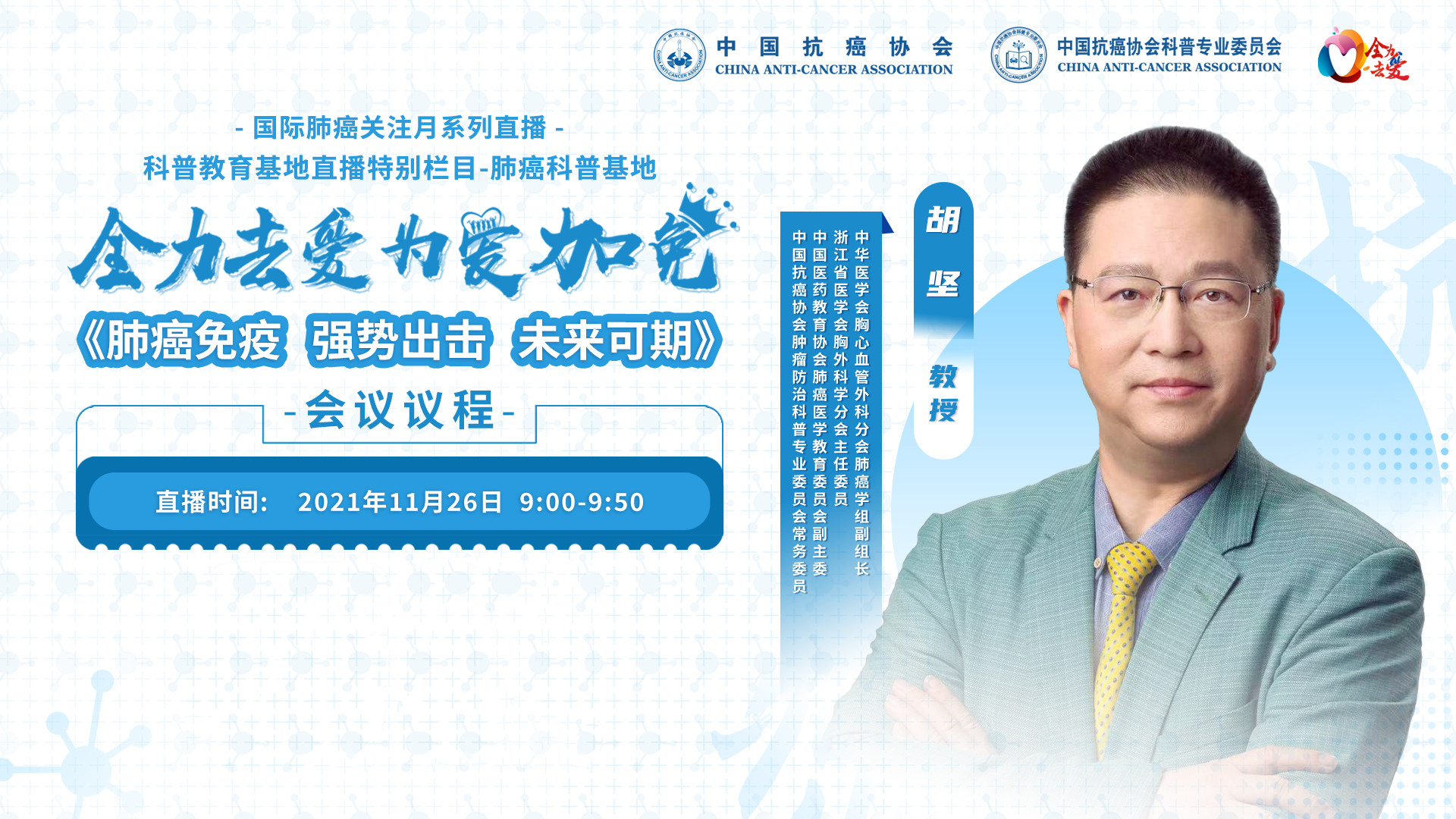 【直播预告】肺癌关注月 | 胡坚教授:肺癌免疫 强势出击 未来可期