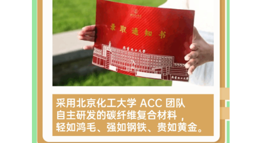 北京化工大学“科技硬核”通知书 碳纤维造能切西瓜